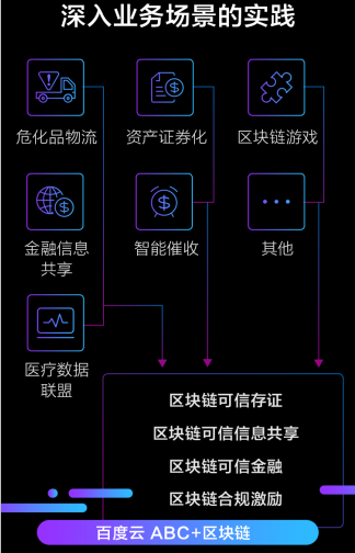 針對不同行業(yè)的特點(diǎn)以及業(yè)務(wù)場(chǎng)景的實(shí)際需求,百度云基于區塊鏈引擎(Baidu Blockchain Engine),結合云計算的資源、部署、交付和安全等系統能力,將區塊鏈平臺進(jìn)行云端系統化和產(chǎn)品化,將可信存證、可信共享、可信金融、合規激勵等能力有序輸出至金融、物聯(lián)網(wǎng)、醫療、游戲等行業(yè),賦能合作伙伴,助力構建多行業(yè)的可信生態(tài)。