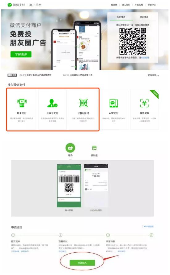 微信支付商戶(hù)申請入口,已在微信支付商戶(hù)平臺(pay.weixin.qq.com)正式開(kāi)放,符合條件的商戶(hù)可自行發(fā)起微信支付商戶(hù)接入申請。商戶(hù)接入微信支付一共三步: