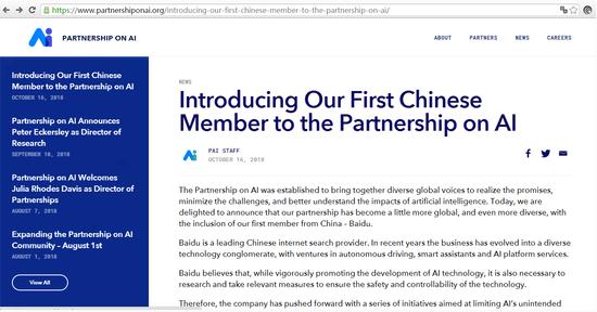 PingWest 品玩 10 月 17 日訊,引述網(wǎng)易新聞消息,美國時(shí)間 10 月 16 日,Partnership on AI 在最新公告中歡迎首位中國新成員百度加入,并稱(chēng)此次合作是“建立一個(gè)真正全球性合作機構的重要一步”,未來(lái)百度將與 Partnership on AI 中的其他成員一同致力于 AI 研發(fā)標準和全球性 AI 政策制定。