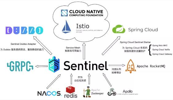 Sentinel 的開(kāi)源生態(tài)非常廣泛,其針對常用的框架和庫進(jìn)行了適配,包括 Web Servlet、Dubbo、Spring Cloud 和 gRPC 等,用戶(hù)只需引入相應依賴(lài)并進(jìn)行簡(jiǎn)單配置即可快速接入 Sentinel。同時(shí),Sentinel 動(dòng)態(tài)規則源針對常見(jiàn)的配置中心和遠程存儲進(jìn)行適配,目前已支持 Nacos、ZooKeeper、Apollo、Redis 等多種動(dòng)態(tài)規則源,可以覆蓋到很多的生產(chǎn)場(chǎng)景。未來(lái),Sentinel 還會(huì )對更多常用框架和配置中心進(jìn)行適配,覆蓋更廣泛的場(chǎng)景。
