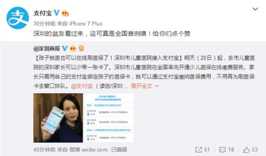 早在 2016 年 5 月,支付寶在深圳就打通了醫保功能,刷支付寶就能用醫保里的錢(qián),去年 6 月升級后,藥店買(mǎi)藥也可以不用帶醫???,如今帶娃看病可以不帶醫??ǜ蔷哂欣锍瘫饬x。
