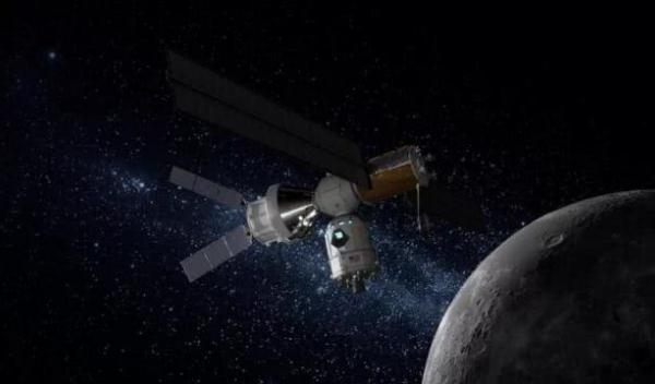 洛克希德馬丁公司的月球登陸器與迷你版 Gateway 對接,旁邊是獵戶(hù)座飛船