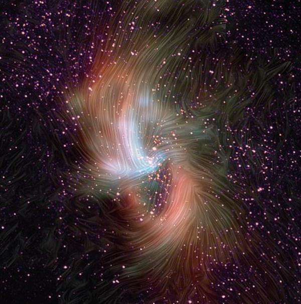 NASA 的研究人員利用安裝在飛行望遠鏡上的遠紅外光探測器繪制出了這片磁場(chǎng),以進(jìn)一步探測銀河系中心黑洞周?chē)男请H塵埃運動(dòng)。和許多星系一樣,銀河系的中心也有一個(gè)超大質(zhì)量黑洞,研究人員將其命名為人馬座 a *(Sagittarius A*)。