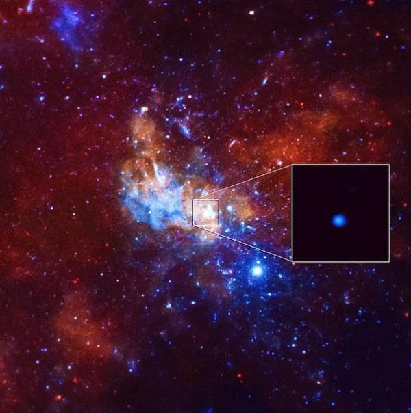 人馬座A*是銀河系的中心的一個(gè)超大質(zhì)量黑洞,也是離我們最近的超大質(zhì)量黑洞,被認為是研究黑洞物理的最佳目標。超大質(zhì)量黑洞是星系中心密度極高的區域,其質(zhì)量可能是太陽(yáng)質(zhì)量的數十萬(wàn)倍到數十億倍。作為強大的引力源,超大質(zhì)量黑洞不斷吸收著(zhù)周?chē)膲m埃和氣體。