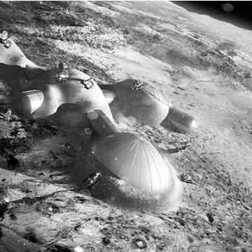 20世紀50年代,隨著(zhù)載人航天時(shí)代的開(kāi)啟,各國科學(xué)家開(kāi)始提出各種月球基地概念和方案。1959年,美國陸軍發(fā)起一項名為“地平線(xiàn)計劃”的研究項目,希望在1967年之前在月球建立一座堡壘。其設想在1965年由兩名“士兵宇航員”先行著(zhù)陸,之后使用“土星一號”逐次運輸建筑工人和貨物。