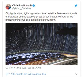 據外媒 BGR 報道,國際空間站上的宇航員可以欣賞到很多獨一無(wú)二的美景。這個(gè)軌道實(shí)驗室能在短短 92 分鐘內繞地球一周,因此宇航員能夠不斷看到日出、日落和所有可能想要的星體。它還使空間站成為拍攝延時(shí)攝影的理想場(chǎng)所,而 NASA 的 Christina Koch 正是這樣做的。