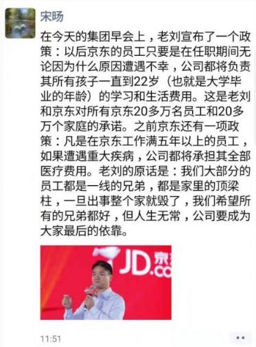 另外,據京東方面表述,在此之前,京東還有一項關(guān)懷政策,凡是在京東工作滿(mǎn)五年以上的員工,如果遭遇重大疾病,公司都將承擔其全部醫療費用。