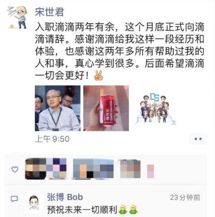 隨后,滴滴 CTO 張博在他的微信朋友圈下評論稱(chēng),“預祝未來(lái)一切順利。”