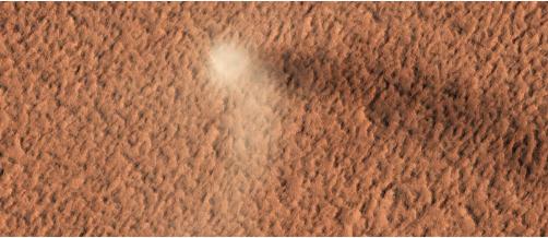 MRO 團隊成員 Sharon Wilson 寫(xiě)道: “有幾張 HiRise 影像記錄了塵魔留下的痕跡,但很少能捕捉到其移動(dòng)的樣子。” 該航天器于 2019 年 10 月上旬拍攝了這張照片。