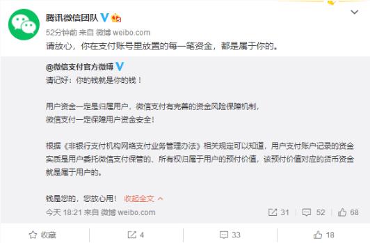 用戶(hù)資金一定是歸屬用戶(hù),微信支付有完善的資金風(fēng)險保障機制,