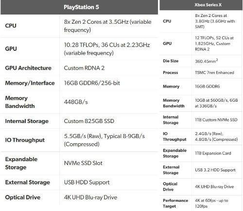 根據微軟和索尼發(fā)布的官方數據顯示,兩臺主機在配置方面各有千秋:Xbox Series X 在性能上、特別是浮點(diǎn)運算能力方面更具優(yōu)勢;PS5 則配備了超高速 SSD。然而,在 GPU 方面擁有 36 個(gè) CU 的 PS5 可以達到 10.28TF 的能力,看起來(lái)相比 Xbox Series X 的 52 個(gè) CU,12TF 差距并不大。這其實(shí)與二者的頻率有著(zhù)很大的關(guān)系:PS5 的 GPU 時(shí)鐘頻率為 2.23GHz,而 Xbox Series X 僅為 1.825GHz,但是 PS5 使用的動(dòng)態(tài)頻率,Xbox 卻是鎖頻。