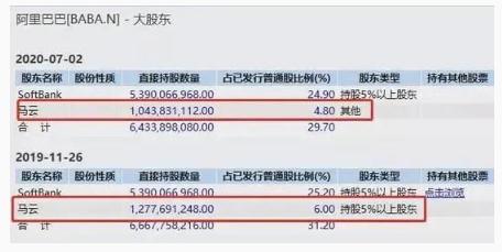根據公開(kāi)資料顯示,從去年 11 月 26 日港股上市到今年 7 月 2 日期間,阿里巴巴創(chuàng )始人馬云持有的阿里巴巴股份減少超 2.3386 億股,持股比例首次降至不足 5% 。按照上述區間平均股價(jià)及匯率估算,馬云這波套現約達 430 億元人民幣。