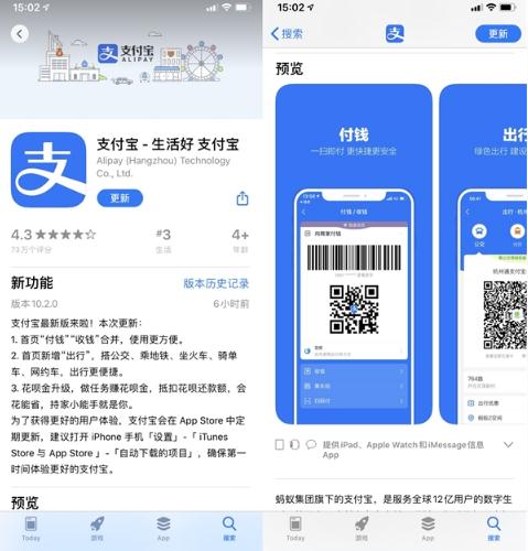 8 月 24 日,支付寶 iOS 端整機 10.2.0 版本,首頁(yè)“付錢(qián)”“收錢(qián)”合并,并新增“出行”功能,無(wú)論是公交、地鐵、火車(chē)、單車(chē)還是網(wǎng)約車(chē)都更加方便。