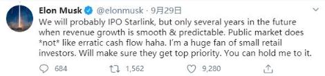 馬斯克計劃未來(lái)幾年內讓 SpaceX 星鏈業(yè)務(wù)上市 圖片來(lái)源:推特截圖