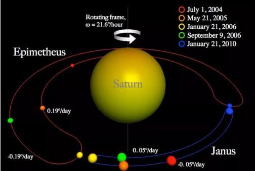 馬蹄形軌道聽(tīng)起來(lái)完全不可能。然而雷蒙德指出,土星的衛星土衛十和土衛十一就是在距離土星約 93000 英里(15 萬(wàn)公里)的馬蹄形軌道上運行,兩顆衛星的運行軌道就在土星環(huán)之外。兩顆衛星之間最近的距離大約是 9300 英里(15000 公里)??梢韵胂笠幌?,當一對位于太陽(yáng)系宜居帶中地球大小的行星共同圍繞太陽(yáng)運行時(shí),各自的馬蹄形軌道會(huì )是什么樣子。所謂的宜居帶指在圍繞恒星的區域中,溫度適宜,足以讓液態(tài)水在行星表面上存在。