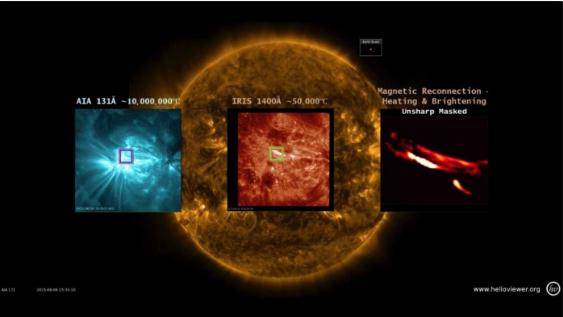 為了發(fā)現磁重聯(lián),科學(xué)家們在遠為冷卻的周?chē)h(huán)境中尋找強烈的熱量,為了確認觀(guān)測到的是納米耀斑,該物體還必須加熱日冕。研究人員使用美國宇航局被稱(chēng)為 IRIS 的干涉區成像光譜儀衛星拍攝的圖像進(jìn)行研究。