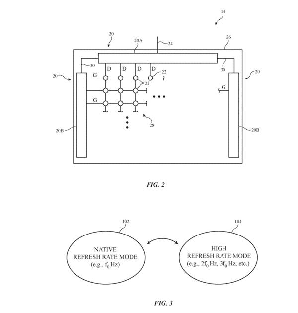 專(zhuān)利指出,在開(kāi)啟高刷新了模式后,iPhone 可支持以 2 倍、3 倍甚至 4 倍的原生刷新率更新內容。