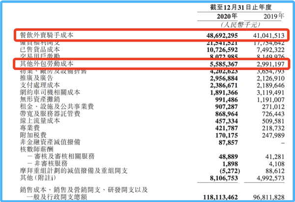 海豚投研指出,2020年美團餐飲+非餐外賣(mài)的人力外包費約為543億元,相當于各類(lèi)騎手總收入。
