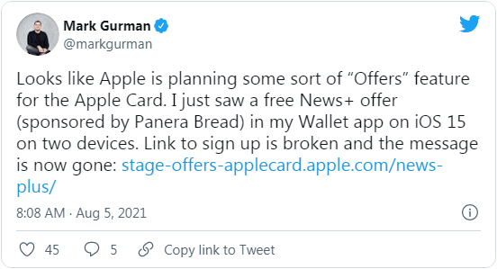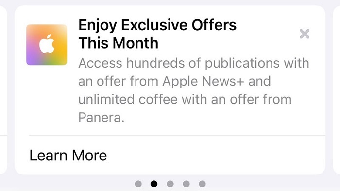 MacRumors 報道稱(chēng):蘋(píng)果已于本周開(kāi)始向 Apple Card 用戶(hù)推廣獨家優(yōu)惠,且在訪(fǎng)問(wèn)錢(qián)包應用的時(shí)候,相關(guān)優(yōu)惠將直接呈現在用戶(hù)眼前。由彭博社 Mark Gurman 在 Twitter 上分享的消息可知,蘋(píng)果為 Apple Card 用戶(hù)提供了免費訪(fǎng)問(wèn) Apple News+、以及在 Panera Bread 下單時(shí)的咖啡無(wú)限續杯福利。