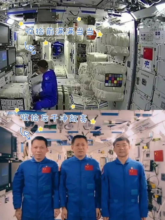 除了開(kāi)展各項實(shí)驗,整理內務(wù)也不能停。還記得他們剛進(jìn)駐天和核心艙時(shí),艙內堆滿(mǎn)了大大小小的包裹,現在艙內環(huán)境已變得干凈整潔、秩序井然。收納的秘訣,就是在地板上設置儲物空間,那些暫時(shí)用不到的包裹,就會(huì )被收納進(jìn)空間站的夾層之中,使“太空家園”更加溫馨舒適。