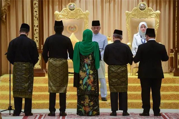 2020年3月10日,在馬來(lái)西亞普特拉賈亞,馬來(lái)西亞最高元首阿卜杜拉(中)出席穆希丁內閣宣誓就職儀式。(新華社發(fā),馬來(lái)西亞新聞局供圖)