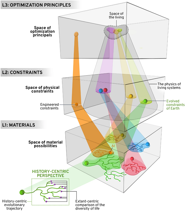 Kempes 和 Krakauer 在他們的三層框架中呼吁研究人員首先考慮可能存在生命的材料的全部空間;然后是限制宇宙中可能存在的生命的約束;第三是驅動(dòng)適應的優(yōu)化過(guò)程。一般來(lái)說(shuō),該框架認為生命是自適應信息并采用計算類(lèi)比來(lái)捕獲生命的核心過(guò)程。