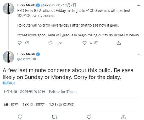 10 月 10 日消息特斯拉首席執行官埃隆?馬斯克 (Elon Musk)現宣布,,出于“最后一刻的擔憂(yōu)”,此前承諾將在周五向符合條件的司機推出的全 FSD 輔助駕駛測試版將進(jìn)一步推遲。