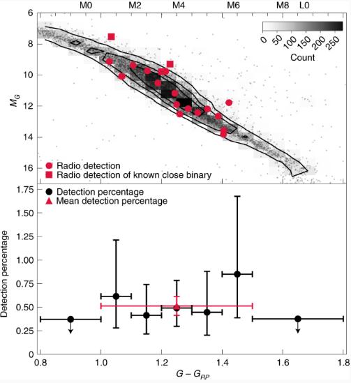 該小組正在研究紅矮星;這是一種具有強烈磁力活動(dòng)的小恒星,產(chǎn)生耀斑和無(wú)線(xiàn)電發(fā)射。探測這些恒星本身就是一個(gè)進(jìn)步,因為在離地球更遠的地方,空間變得非常嘈雜,而且分離單個(gè)天體也很困難。但是 LOFAR 提高的靈敏度使得天文學(xué)家們能夠發(fā)現 19 顆紅矮星。