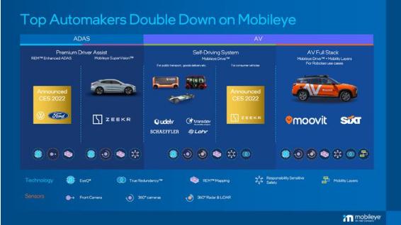 在和福特合作方面,福特將在未來(lái)版本的福特 BlueCruise 平臺中開(kāi)始使用 Mobileye 的道路信息管理(REM)自動(dòng)駕駛汽車(chē)地圖技術(shù),該技術(shù)可以讓駕駛員在駕駛過(guò)程中無(wú)需用手操作車(chē)輛,同時(shí)由一個(gè)面向駕駛員的攝像頭檢測駕駛員是否注意前方道路。此外,雙方還將在 Mobileye 的開(kāi)放平臺上進(jìn)行合作,以允許福特構建并整合自己的解決方案。