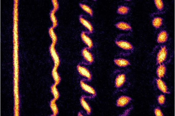 在 2022 年 1 月 5 日發(fā)表在《自然》雜志上的一項研究中,麻省理工學(xué)院的團隊快速旋轉了超冷原子的量子流體。他們觀(guān)察到,最初的圓形原子云首先變形為一個(gè)薄薄的針狀結構。然后,在經(jīng)典效應應該被抑制,只留下相互作用和量子法則來(lái)主導原子行為的時(shí)候,針狀物自發(fā)地斷成了一個(gè)結晶圖案,類(lèi)似于一串微型的量子龍卷。