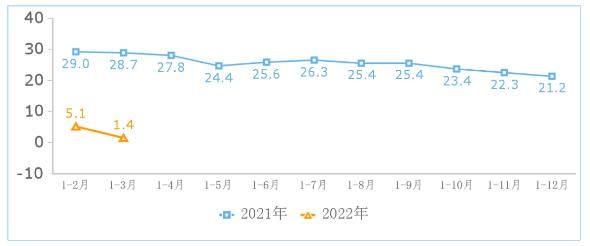 研發(fā)經(jīng)費加速增長(cháng)。一季度,我國規模以上互聯(lián)網(wǎng)企業(yè)共投入研發(fā)經(jīng)費 177.5 億元,同比增長(cháng) 8.4%,增速較 1-2 月份提高 11.2 個(gè)百分點(diǎn)。