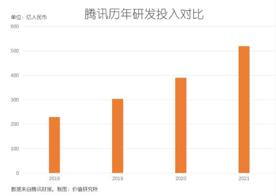 數據顯示,2021 財年騰訊研發(fā)投入達到 18 億元,同比增長(cháng) 33%。拆分到各個(gè)季度,研發(fā)支出的同比增速都在 30% 以上,整體投入較 2018 年接近翻倍。此外,騰訊研發(fā)團隊規模也是不斷擴大,截止去年年底研發(fā)人員總數同比增長(cháng) 41%,新增研發(fā)項目 6000+,較 2020 年增加 51%。