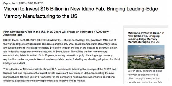 美光宣布未來(lái)投資150億美元 建內存芯片制造工廠(chǎng) 15:13:03