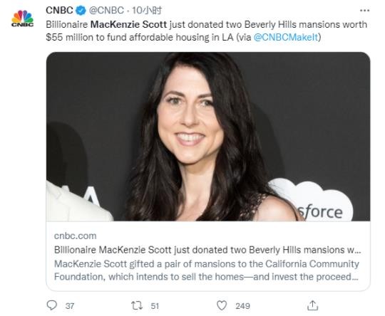 貝索斯前妻捐贈了兩棟豪宅 總價(jià)值約為5500萬(wàn)美元 10:09:18