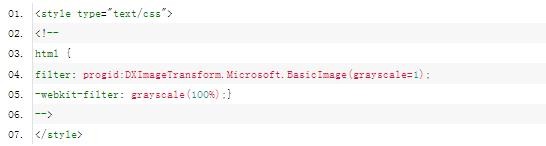 1、網(wǎng)頁(yè)黑白代碼外部樣式(寫(xiě)入*.css文件請用)