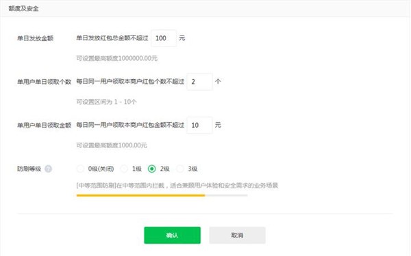 單日發(fā)送金額上限:該商戶(hù)一天允許發(fā)放的紅包總金額上限。