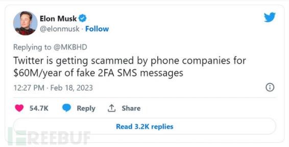 短信驗證帶來(lái)的安全隱患已經(jīng)持續了很久,埃隆·馬斯克(Elon Musk)指出,僅僅在假冒 2FA 短信上,每年損失約 6000 萬(wàn)美元。
