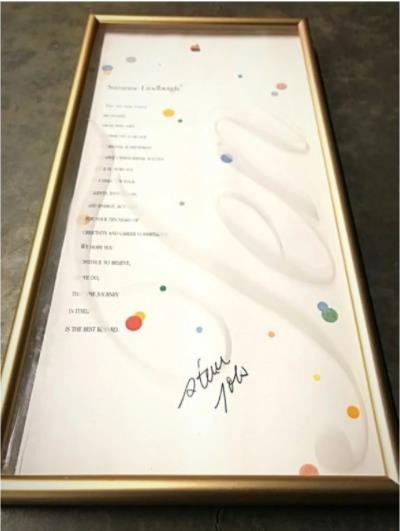 這個(gè)獎牌上有喬布斯的簽名和一段鼓勵性的話(huà):“我們希望你繼續相信,就像我們一樣,旅途本身就是最好的回報。”