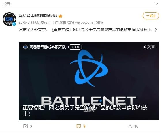 暴雪在中國大陸由網(wǎng)易運營(yíng)的產(chǎn)品退款申請截止到本月底 11:26:25