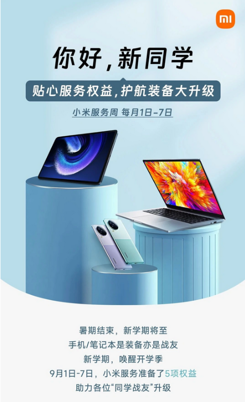 小米推出新生開(kāi)學(xué)季活動(dòng):0 元手機清潔,平板等硬件保險 6 折購 08:44:33