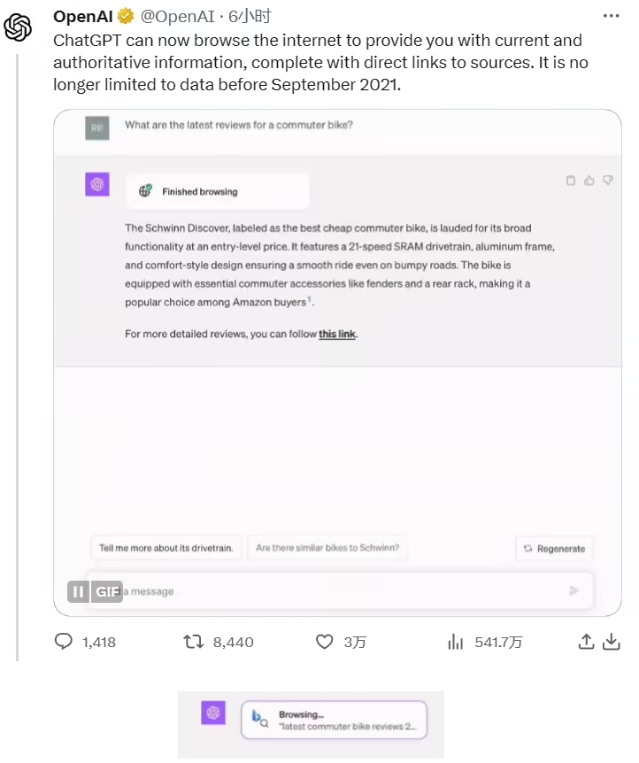 ChatGPT 再迎重大升級:必應聯(lián)網(wǎng)功能正式上線(xiàn),不再局限于舊數據