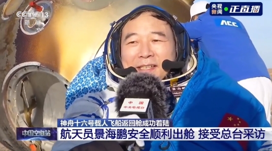 ▲ 景海鵬安全順利出艙,圖源央視新聞直播/侵刪