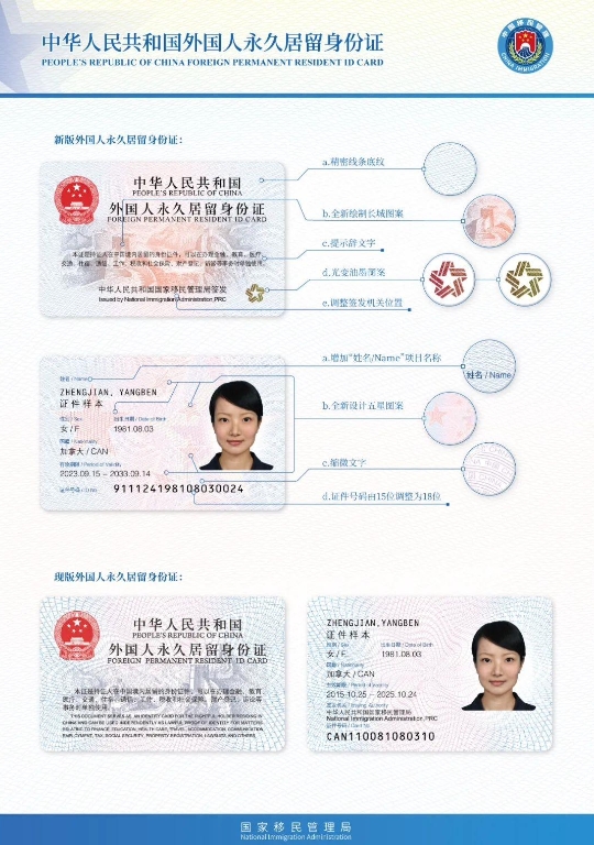 新版永居證在保持現版基本式樣的基礎上,新加入了體現國家標識的五星元素,優(yōu)化美化版式布局,采用更為先進(jìn)的防偽技術(shù),改進(jìn)提升了證件信息存儲和應用管理服務(wù)手段。新版永居證升級技術(shù)、增強功能,新證啟用后,持證人可通過(guò)互聯(lián)網(wǎng)平臺線(xiàn)上辦理交通出行、生活消費、金融等私人事務(wù),將進(jìn)一步便利持證人在境內工作、學(xué)習、生活。
