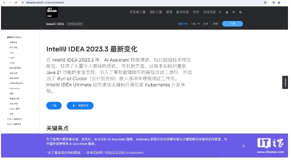 在 IDEA 下載頁(yè)面,JetBrains 表示為了向用戶(hù)提供高水準、多元化、本土化的 AI Assistant 服務(wù),JetBrains 目前正在與阿里云通義大模型商洽未來(lái)的合作事宜,為中國開(kāi)發(fā)者帶來(lái) AI Assistant 服務(wù)。