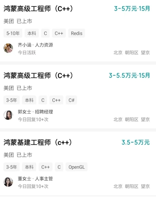拿美團來(lái)說(shuō),甚至開(kāi)出了月薪30-55k且15薪的高工資來(lái)吸引鴻蒙開(kāi)發(fā)者。這都說(shuō)明鴻蒙開(kāi)發(fā)者已經(jīng)成為了新的就業(yè)風(fēng)口。
