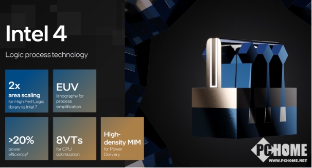 首先是制程,這是英特爾首個(gè)基于Intel 4制程工藝打造的處理器平臺,Intel 4是英特爾“四年五制程節點(diǎn)”的關(guān)鍵一環(huán),Intel 4的量產(chǎn)標志著(zhù)順利導入了EUV,也就是極紫外光刻。