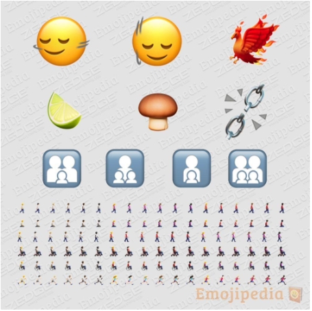 本次更新共計新增 118 個(gè) Emoji,包括 6 個(gè)全新 Emoji,4 個(gè)無(wú)性別區分的家庭 Emoji。此外還有 6 個(gè)現有人物表情符號的新方向區分版本,算上性別和膚色的變化,共有 108 個(gè)新表情符號。