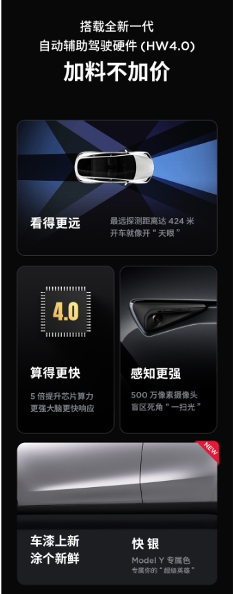 加量不加價(jià):特斯拉 Model Y 升級 HW4.0 輔助駕駛硬件,同時(shí)推出 8000 元新春優(yōu)惠、2000 元選配“快銀”車(chē)漆等政策 10:03:36