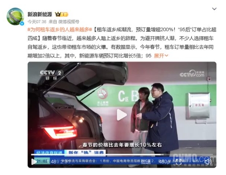春節租車(chē)訂單比去年增加2倍多 新能源汽車(chē)成香餑餑 09:52:19