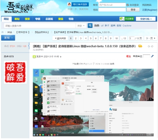 根據吾愛(ài)破解社區用戶(hù) @白水 1573 爆料,微信將迎來(lái) Linux 原生版重構,全新 1.0 版本已開(kāi)啟內測,并放出了測試截圖和安裝包。